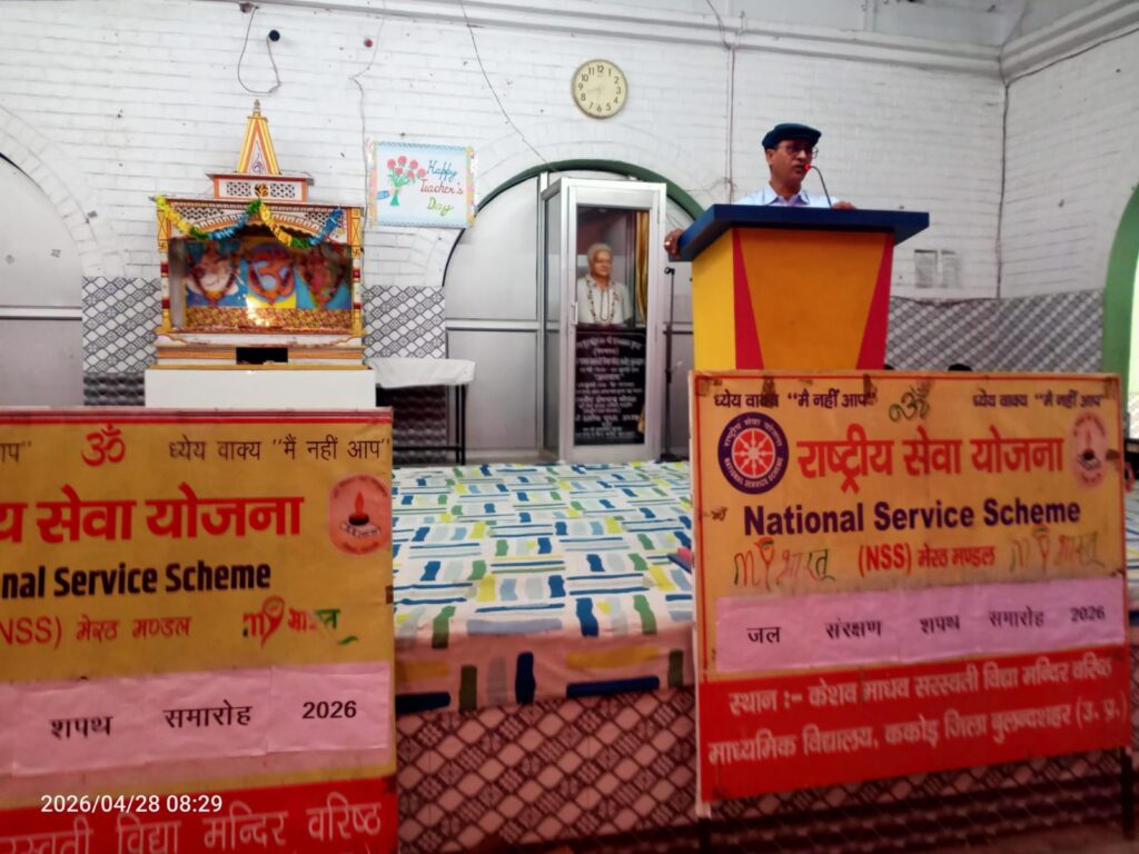 दिनांक 28 अप्रैल 2026 को केशव माधव सरस्वती विद्या मंदिर वरिष्ठ माध्यमिक विद्यालय ककोड़ में जल संरक्षण दिवस के कार्यक्रम का आयोजन किया गया। कार्यक्रम के अध्यक्ष विद्यालय के प्रधानाचार्य श्री मनोज कुमार मिश्र जी एवं मुख्य वक्ता आचार्य श्री मनोज शर्मा जी रहे। कार्यक्रम का शुभारंभ दीप प्रज्ज्वलन एवं पुष्पार्चन के साथ किया गया। मुख्य वक्ता आचार्य श्री मनोज शर्मा जी बताया कि जल संरक्षण का उद्देश्य ताजे पानी के प्राकृतिक संसाधन का सतत प्रबंधन करना , जलमंडल की रक्षा करना और वर्तमान एवं भविष्य की मानवीय मांगों को पूरा करना है। जल संरक्षण से जल संकट से बचा जा सकता है । इसमें इन उद्देश्यों को प्राप्त करने के लिए सभी नीतियां, रणनीतियां और गतिविधियां शामिल हैं। जनसंख्या, परिवार का आकार और वृद्धि तथा समृद्धि, ये सभी कारक जल उपयोग की मात्रा को प्रभावित करते हैं। जलवायु परिवर्तन और अन्य कारकों ने प्राकृतिक जल संसाधनों पर दबाव बढ़ा दिया है । यह विशेष रूप से विनिर्माण और कृषि सिंचाई के क्षेत्र में देखा जाता है ।कई देशों ने जल संरक्षण के लिए नीतियों को सफलतापूर्वक लागू किया है। जल संरक्षण के लिए कई प्रमुख गतिविधियाँ हैं। इनमें से एक है जल की हानि , उपयोग और संसाधनों की बर्बादी । जल की गुणवत्ता को किसी भी प्रकार की क्षति से बचाना । तीसरा है जल प्रबंधन प्रथाओं में सुधार करना जिससे जल का उपयोग कम हो या उसका लाभकारी उपयोग बढ़े।घरों, वाणिज्यिक क्षेत्रों और कृषि में पानी के उपयोग/हानि को कम करने के लिए तकनीकी समाधान उपलब्ध हैं। सामाजिक समाधानों से जुड़े जल संरक्षण कार्यक्रम आमतौर पर स्थानीय स्तर पर नगरपालिका जल उपयोगिताओं या क्षेत्रीय सरकारों द्वारा शुरू किए जाते हैं। विद्यालय के अध्यक्ष श्री अशोक गुप्ता जी, प्रबंधक श्री जगदीश प्रसाद ढोंडियाल जी, कोषाध्यक्ष श्री दिनेश सिंघल जी एवं सह व्यवस्थापक श्री कालीचरण जी ने जल संरक्षण के उपाय बताते हुए कहा कि मंजन करते समय, हाथ धोते समय या शेविंग करते समय नल खुला न छोड़ें। घर के नल, पाइप या टॉयलेट में लीकेज की जांच करें और उसे तुरंत ठीक करवाएं।शावर की तुलना में बाल्टी से नहाने में काफी कम पानी खर्च होता है।सब्जियां या फल धोते समय चलते नल की जगह एक टब में पानी भरकर धोएं। वाशिंग मशीन या डिशवॉशर का उपयोग तभी करें जब वे पूरी तरह भरे हों।पाइप की जगह बाल्टी और मग का उपयोग करें। एनएसएस प्रोग्राम ऑफिसर श्रीकृष्ण शर्मा जी ने बताया कि बारिश के पानी को इकट्ठा करने की तकनीक (छत प्रणाली) अपनाकर जल संरक्षण करें। जल संरक्षण के इस कार्यक्रम में विद्यालय के प्रधानाचार्य जी ने मनोज कुमार मिश्र जी ने सभी आचार्यों एवं विद्यार्थियों को जल संरक्षण के लिए शपथ दिलाई।
