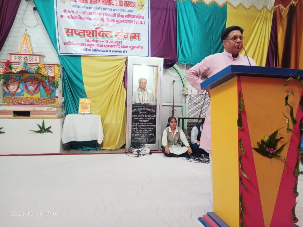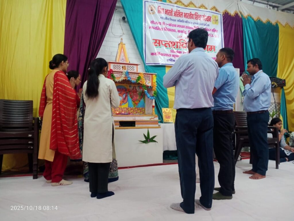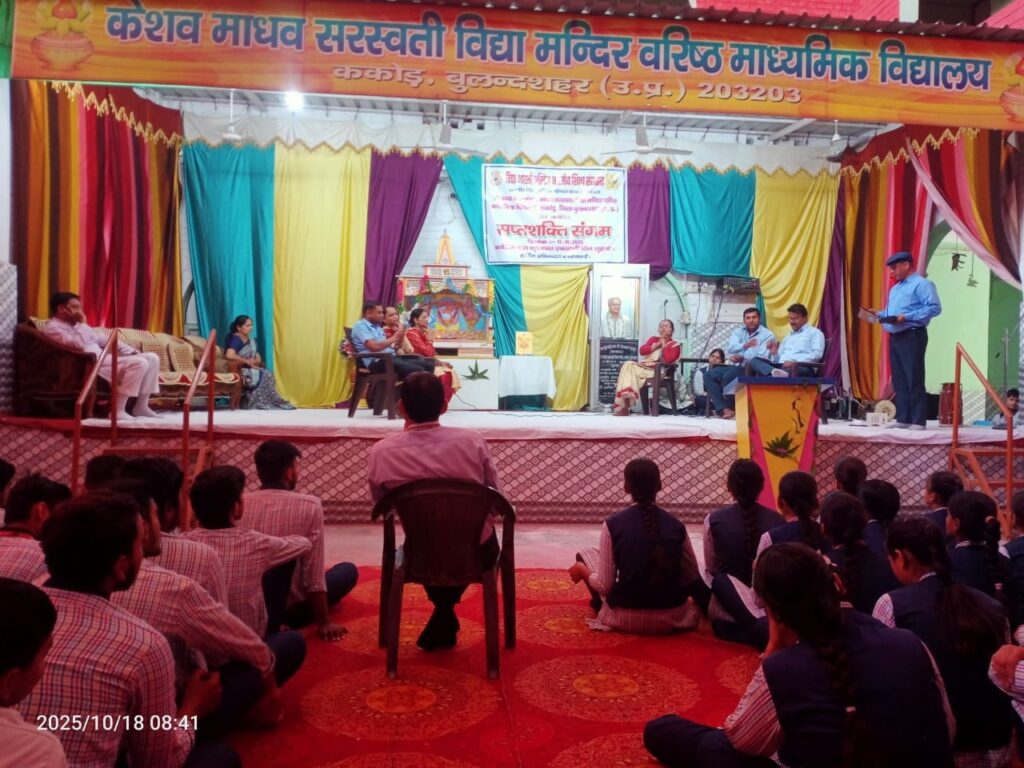 दिनांक 18 अक्टूबर 2025 को केशव माधव सरस्वती विद्या मंदिर वरिष्ठ माध्यमिक विद्यालय ककोड़ में दीपों के पर्व दीपावली का कार्यक्रम बड़े ही हर्षोल्लास एवं धूमधाम के साथ मनाया गया। कार्यक्रम की अध्यक्षता विद्यालय के प्रधानाचार्य श्री मनोज कुमार मिश्र जी ने की। मुख्य वक्ता आचार्या बहन श्रीमती सरिता सिंह जी रहीं।कार्यक्रम का संचालन आचार्या बहन श्रीमती सोनिया गोस्वामी जी ने किया। विद्यालय के अध्यक्ष श्री अशोक गुप्ता जी ने सभी क्षेत्रवासियों को दीपावली पर्व की शुभकामनाएं दी तथा अपनी संस्कृति को बनाए रखने के लिए त्यौहारों को उचित ढंग से मनाने का संदेश दिया। कार्यक्रम का शुभारंभ दीप प्रज्ज्वलन एवं पुष्पार्चन के साथ हुआ। कार्यक्रम में विद्यालय के भैया बहनों ने दीपावली पर्व को मनाए जाने के कारण पर प्रकाश डालते हुए श्रीराम भगवान की स्तुति में भजन एवं मनमोहक नृत्य की प्रस्तुति की। वंदना स्थल पर स्वदेशी वस्तुओं के उपयोग पर वाद विवाद प्रतियोगिता का आयोजन विद्यालय के प्रधानाचार्य श्री मनोज कुमार मिश्र जी के मार्गदर्शन में किया गया। इस वाद विवाद प्रतियोगिता में आचार्य श्री रमेश चंद्र शर्मा जी, श्री अवधेश मीणा जी, श्री दीनदयाल शर्मा जी, आचार्या बहन श्रीमती सुमनलता शर्मा जी, श्रीमती ममता शर्मा जी एवं श्रीमती सोनिया गोस्वामी जी ने भाग लिया। मुख्य वक्ता आचार्या बहन श्रीमती सरिता सिंह जी ने धनतेरस, नरक चतुर्दशी, दीपावली एवं गोवर्धन आदि पर्व को मनाए जाने संबंधी पौराणिक कथाओं का वर्णन किया तथा सुंदर भजनों की प्रस्तुति की। प्रधानाचार्य जी ने सभी को दीपावली पर्व की शुभकामनाएं दी तथा स्वदेशी वस्तुओं के उपयोग की सलाह दी। आज के इस अवसर पर विद्यालय में शून्य निवेश, ग्रीटिंग कार्ड प्रतियोगिता एवं थाल सज्जा,कलश सज्जा,कक्षा सज्जा प्रतियोगिता आदि प्रतियोगिताओं का आयोजन किया गया। विद्यालय के प्रबंधक श्री जगदीश प्रसाद ढौड़ियाल जी, कोषाध्यक्ष श्री दिनेश सिंघल जी एवं सह व्यवस्थापक श्री कालीचरण जी ने विभिन्न प्रतियोगिताओं में प्रतिभाग करने वाले विद्यार्थियों को आशीर्वाद देकर उत्साहवर्धन किया। आज के इस कार्यक्रम में विद्यालय के समस्त आचार्य बंधु, आचार्या बहने एवं विद्यालय के समस्त भैया उपस्थित रहे।