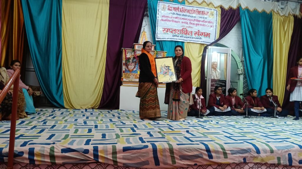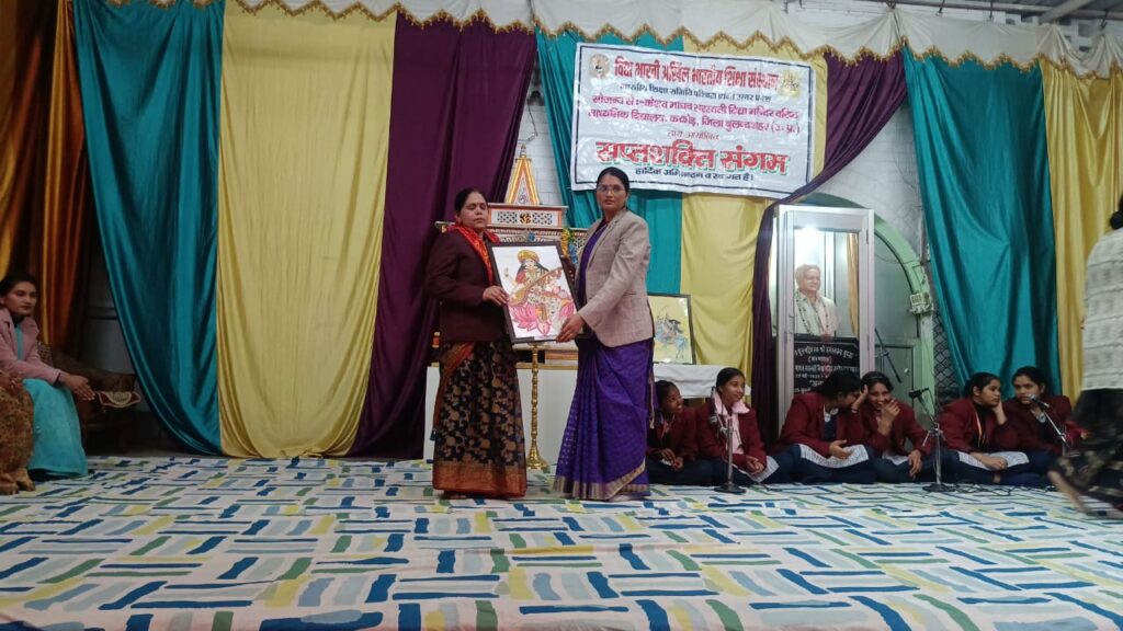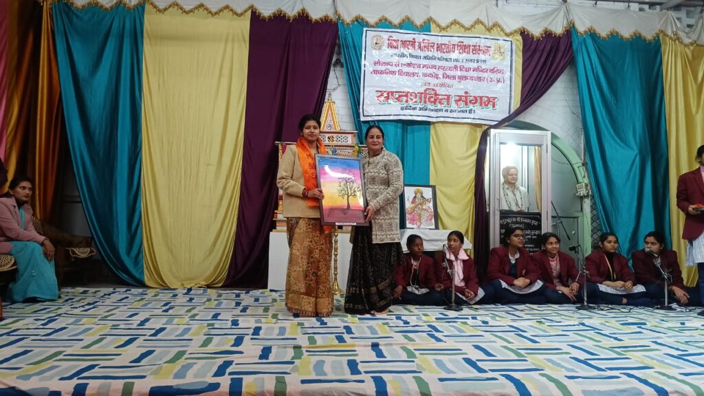 दिनांक 19 जनवरी 2026 को केशव माधव सरस्वती विद्या मंदिर वरिष्ठ माध्यमिक विद्यालय ककोड़ में सप्तशक्ति संगम के तीसरे चरण के कार्यक्रम का आयोजन किया गया। कार्यक्रम की रूपरेखा विद्यालय के प्रधानाचार्य श्री मनोज कुमार मिश्र जी द्वारा तय की गई।कार्यक्रम की अध्यक्षआचार्या बहन श्रीमती ममता शर्मा जी रहीं। कार्यक्रम में मुख्य अतिथि श्रीमती सरोज मिश्रा जी एवं श्रीमती सुमनलता शर्मा जी रहीं। कार्यक्रम की मुख्य वक्ता आचार्या बहन मेघा शर्मा जी एवं चंचल शर्मा जी रहीं। कार्यक्रम की संयोजिका दीदी श्रीमती मधु शर्मा जी एवं श्रीमती कविता शर्मा जी रहीं। कार्यक्रम का संचालन आचार्या बहन श्रीमती सोनिया गोस्वामी जी एवं श्रीमती अनीता सोलंकी जी ने किया।कार्यक्रम में विद्यालय की बहनों ने मनमोहक नृत्य, गीत एवं भजन द्वारा कार्यक्रम को आकर्षक बनाया। कार्यक्रम की संयोजिका दीदी श्रीमती मधु शर्मा जी ने बताया कि भारतीय नारी मात्र एक व्यक्ति नहीं अपितु संपूर्ण चेतना है। उन्होंने श्रीमद् भागवत गीता में वर्णित नारी की सप्तशक्ति का वर्णन किया। उन्होंने कीर्ति, श्री, वाक, स्मृति, मेधा और धृति पर गहनता से चर्चा की और कहा कि नारी अपने इन सप्तगुण का विकास कर संपूर्ण विश्व को दिशा निर्देशित कर सकती है। कार्यक्रम की मुख्य वक्ता आचार्या बहन मेघा जी ने कुटुंब प्रबोधन पर विस्तारपूर्वक चर्चा की। उन्होंने भारतीय दृष्टि में चार आश्रम विवाह संस्कार, आत्मवत, सर्वभूतेषु पर दिशा निर्देश किया। भारत माता, गंगा माता, चंदा मामा और बिल्ली मौसी आदि पर विस्तृत चर्चा किया। भारतीय परिवार में पांच ग्रास गाय, कुत्ता, चींटी, अतिथि तथा पांच यज्ञ ब्रम्ह यज्ञ और मनुष्य यज्ञ पर विस्तृत चर्चा कर कार्यक्रम में उपस्थित सभी माता बहनों का ज्ञानवर्धन किया। परिवार प्रबोधन के आयाम भवन, भजन, भाषा, भूषा आदि पर चर्चा कर माताएं बहनों को सबल बनाने का काम किया। विद्यालय की आचार्या बहन श्रीमती अंशु यादव जी ने कार्यक्रम में प्रश्नोत्तरी कार्यक्रम कर कार्यक्रम की रौनक को बढ़ाया। अंत में जो भी माताएं एवं बहनें प्रश्नोत्तरी कार्यक्रम में सफल हुए उन्हें पुरस्कार से सम्मानित किया गया।विद्यालय की आचार्या बहन श्रीमती मधु शर्मा जी ने सभी का आभार व्यक्त किया। कार्यक्रम के अंत में श्रीमती चंचल सिंह जी ने सभी को संकल्प दिलाया। कार्यक्रम में उपस्थित समस्त अभिभावक मात्र शक्तियों को श्रीमद् भगवत गीता की पुस्तक देकर सम्मानित किया गया। कल्याण मंत्र के साथ कार्यक्रम का समापन हुआ।