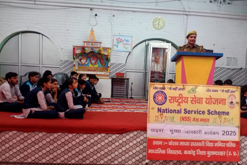 दिनांक 8 नवंबर 2025 को केशव माधव सरस्वती विद्या मंदिर वरिष्ठ माध्यमिक विद्यालय ककोड़ में एनएसएस के तत्वाधान में साइबर सुरक्षा जानकारी कार्यक्रम 2025 का आयोजन किया गया। कार्यक्रम का शुभारंभ दीप प्रज्ज्वलन एवं पुष्पार्चन के साथ किया गया।आज के इस कार्यक्रम में मुख्य अतिथि थाना ककोड के सब इंस्पेक्टर श्री सुभाष राजपूत जी रहे।कार्यक्रम की अध्यक्षता विद्यालय के प्रधानाचार्य श्री मनोज कुमार मिश्र जी ने की। कार्यक्रम का संचालन एनएसएस प्रोग्राम ऑफिसर श्रीकिशन शर्मा जी ने किया। आज के इस कार्यक्रम में विद्यालय के स्वयंसेवकों ने वंदना स्थल पर आयोजित साइबर सुरक्षा संबंधी डिबेट में भाग लिया। कार्यक्रम में मुख्य अतिथि श्री सुभाष राजपूत जी ने डिजिटल दुनिया में सुरक्षित रहने के महत्व पर प्रकाश डाला, जिसमें ऑनलाइन खतरों को पहचानना और उनसे बचाव के तरीके शामिल हैं, जैसे कि फ़िशिंग, ऑनलाइन धोखाधड़ी और साइबर बुलिंग। भाषण में मजबूत पासवर्ड का उपयोग करने और संवेदनशील जानकारी साझा न करने जैसे निवारक उपाय भी सुझाए गए। साइबर अपराध की रिपोर्ट करने के तरीकों का उल्लेख किया। विद्यालय के अध्यक्ष श्री अशोक गुप्ता जी, प्रबंधक श्री जगदीश प्रसाद ढोंडियाल जी एवं कोषाध्यक्ष श्री दिनेश सिंघल जी ने साइबर सुरक्षा की जानकारी देने के लिए सभी पुलिस कर्मियों का आभार व्यक्त किया। आज के इस कार्यक्रम में हेड कांस्टेबल श्री चंद्रवीर सिंह, कांस्टेबल हरजीत सिंह, महिला कांस्टेबल बबीता जी व पंकज कुमारी, समस्त आचार्य बंधु, आचार्या बहनें एवं विद्यार्थी उपस्थित रहे।