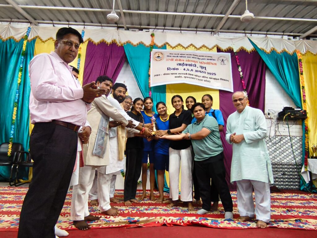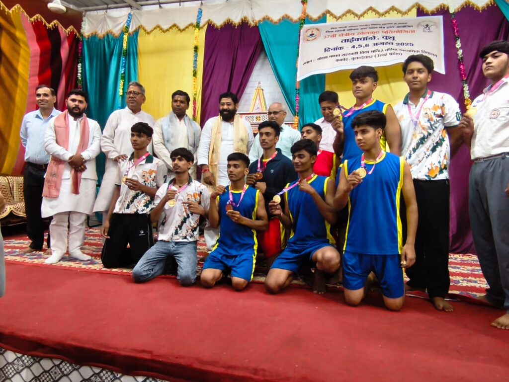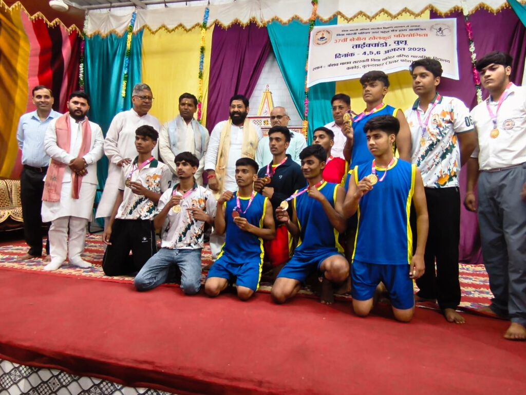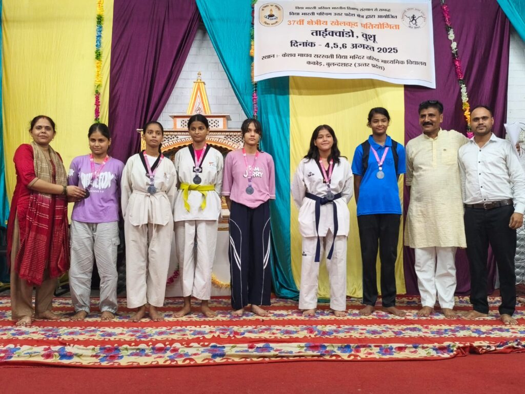 दिनांक 6 अगस्त 2025 को केशव माधव सरस्वती विद्या मंदिर वरिष्ठ माध्यमिक विद्यालय ककोड़ में चल रहे तीन दिवसीय 37 वीं क्षेत्रीय खेलकूद प्रतियोगिताओं (ताइक्वांडो एवं वूशु) का समापन हुआ।सिकंदराबाद क्षेत्र के विधायक श्री लक्ष्मीराज सिंह जी एवं ककोड़ नगर के चेयरमैन श्री मोहित सिंघल जी ने प्रतियोगिता में स्थान प्राप्त करने वाले विद्यार्थियों को मेडल पहनाकर एवं ट्रॉफी देकर सम्मानित किया। वूशु तथा ताइक्वांडो में केशव माधव ककोड़ के भैया बहनों ने सर्वाधिक पदक प्राप्त कर प्रथम स्थान प्राप्त किया तथा प्रतियोगिता में ओवरऑल चैंपियनशिप में प्रथम स्थान पर रही। द्वितीय स्थान पर आगरा तथा तृतीय स्थान पर बागेश्वर उत्तराखंड रहा।श्री हुकुम सिंह जी आगरा, श्री अमित सिंह नैनीताल एवं श्री सागर डागुर ककोड़ एवं सभी निर्णायक टीम ने खेलों को सुव्यवस्थित तरीके से संपन्न कराया। समापन सत्र में विद्यालय के अध्यक्ष श्री अशोक गुप्ता जी, प्रबंधक श्री जगदीश प्रसाद ढोंडियाल जी, कोषाध्यक्ष श्री दिनेश सिंघल जी, सह व्यवस्थापक श्री कालीचरण जी एवं विद्यालय के प्रधानाचार्य श्री मनोज कुमार मिश्र जी ने खिलाड़ियों को जीवन में आगे बढ़ने का आशीर्वाद दिया और अंत में क्षेत्रीय खेलकूद संयोजक श्री सतपाल जी ने सभी का आभार व्यक्त किया और खिलाड़ियों को अखिल भारतीय प्रतियोगिताओं के लिए आशीर्वाद प्रदान किया।