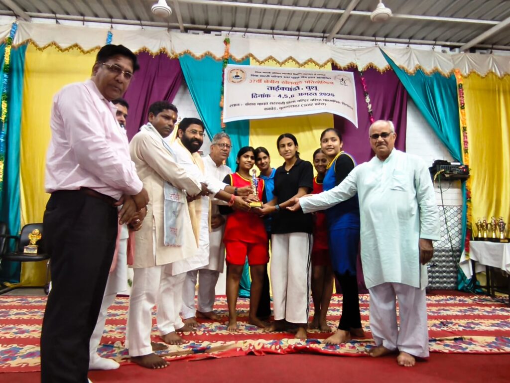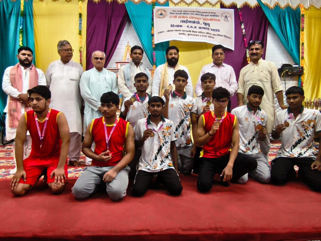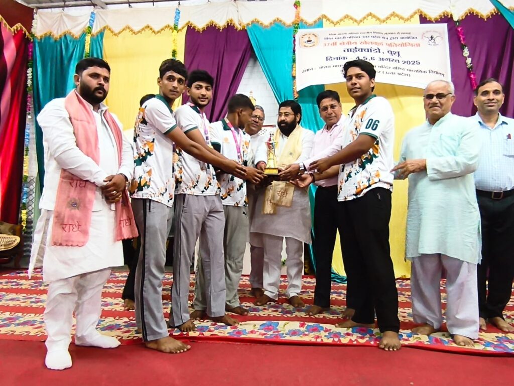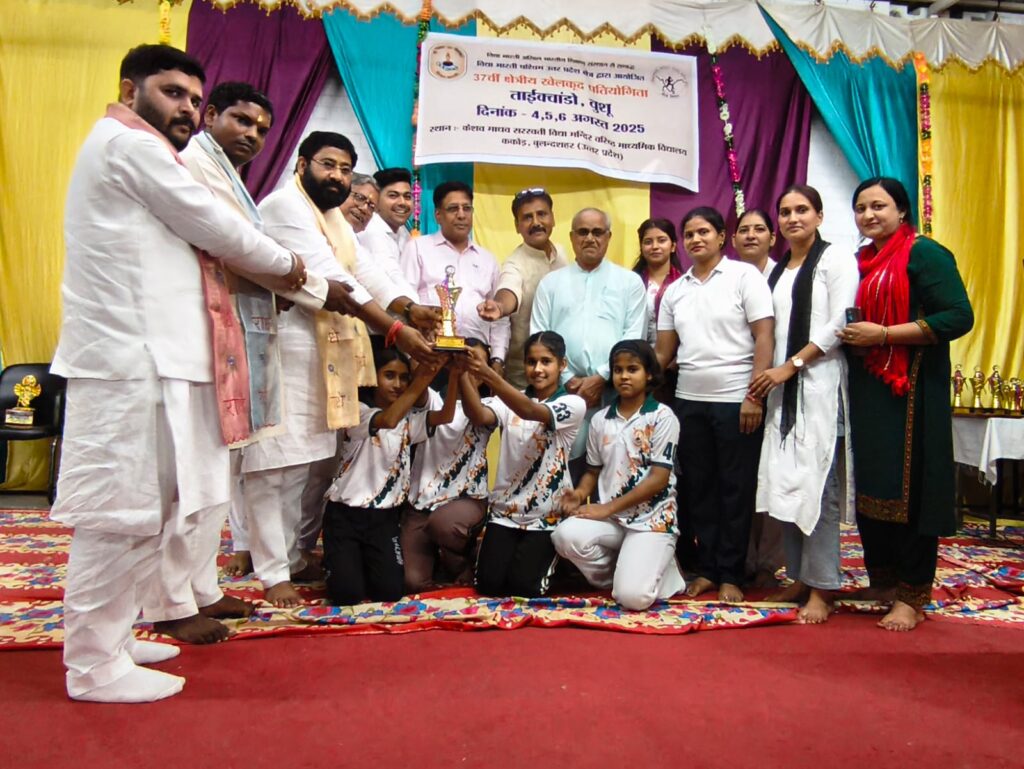 दिनांक 6 अगस्त 2025 को केशव माधव सरस्वती विद्या मंदिर वरिष्ठ माध्यमिक विद्यालय ककोड़ में चल रहे तीन दिवसीय 37 वीं क्षेत्रीय खेलकूद प्रतियोगिताओं (ताइक्वांडो एवं वूशु) का समापन हुआ।सिकंदराबाद क्षेत्र के विधायक श्री लक्ष्मीराज सिंह जी एवं ककोड़ नगर के चेयरमैन श्री मोहित सिंघल जी ने प्रतियोगिता में स्थान प्राप्त करने वाले विद्यार्थियों को मेडल पहनाकर एवं ट्रॉफी देकर सम्मानित किया। वूशु तथा ताइक्वांडो में केशव माधव ककोड़ के भैया बहनों ने सर्वाधिक पदक प्राप्त कर प्रथम स्थान प्राप्त किया तथा प्रतियोगिता में ओवरऑल चैंपियनशिप में प्रथम स्थान पर रही। द्वितीय स्थान पर आगरा तथा तृतीय स्थान पर बागेश्वर उत्तराखंड रहा।श्री हुकुम सिंह जी आगरा, श्री अमित सिंह नैनीताल एवं श्री सागर डागुर ककोड़ एवं सभी निर्णायक टीम ने खेलों को सुव्यवस्थित तरीके से संपन्न कराया। समापन सत्र में विद्यालय के अध्यक्ष श्री अशोक गुप्ता जी, प्रबंधक श्री जगदीश प्रसाद ढोंडियाल जी, कोषाध्यक्ष श्री दिनेश सिंघल जी, सह व्यवस्थापक श्री कालीचरण जी एवं विद्यालय के प्रधानाचार्य श्री मनोज कुमार मिश्र जी ने खिलाड़ियों को जीवन में आगे बढ़ने का आशीर्वाद दिया और अंत में क्षेत्रीय खेलकूद संयोजक श्री सतपाल जी ने सभी का आभार व्यक्त किया और खिलाड़ियों को अखिल भारतीय प्रतियोगिताओं के लिए आशीर्वाद प्रदान किया।