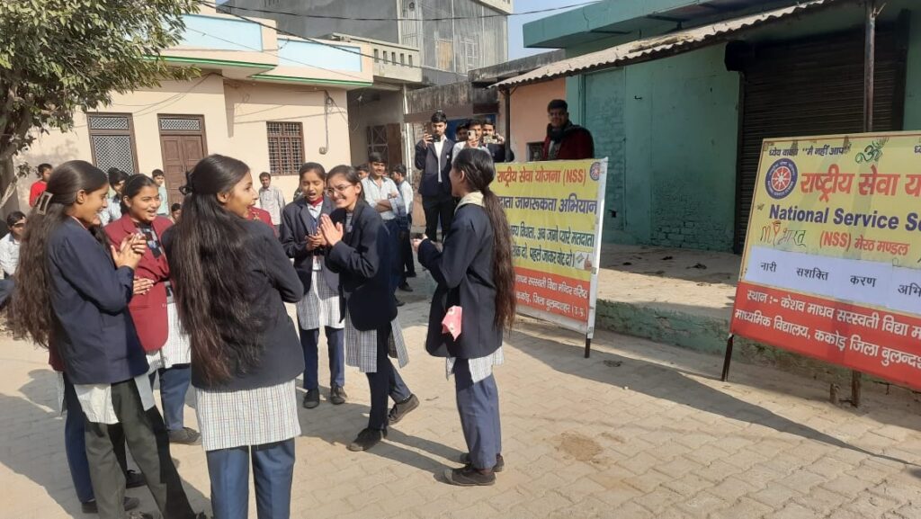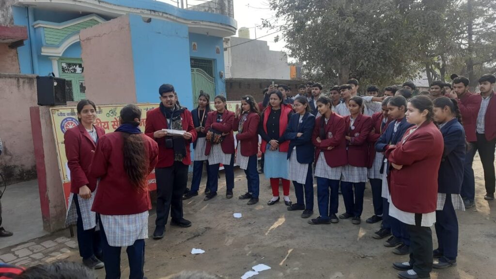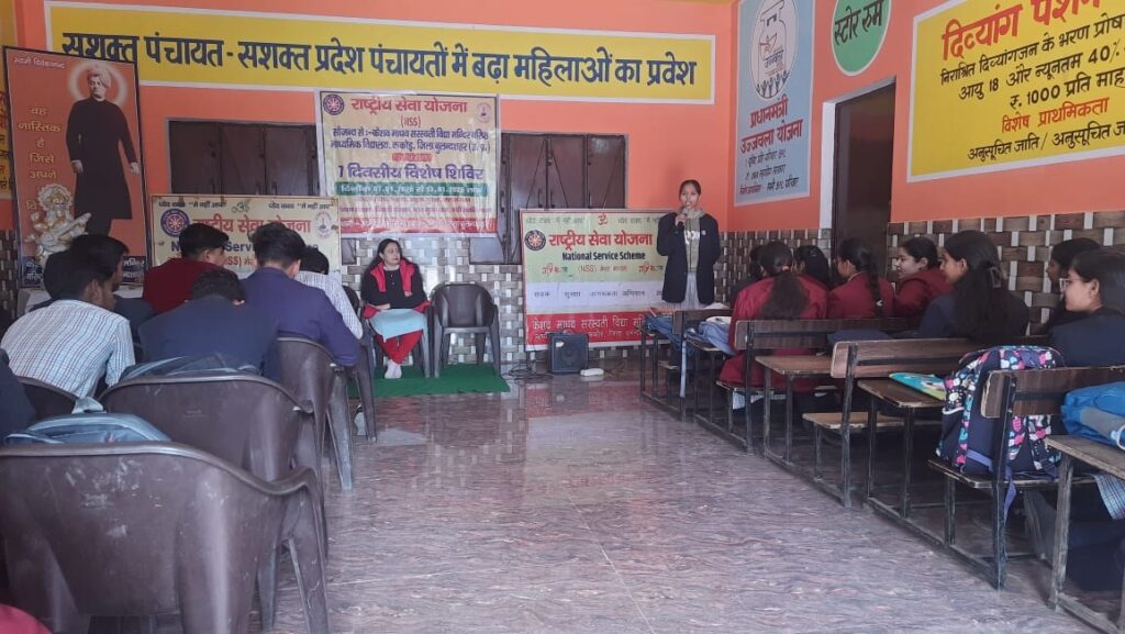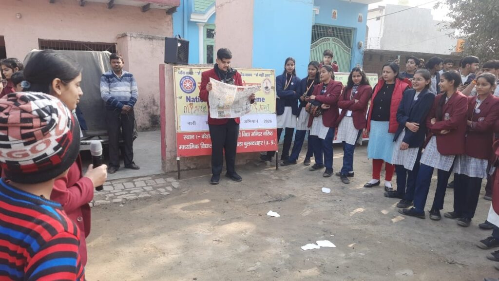 दिनांक 11 जनवरी 2026 को राष्ट्रीय सेवा योजना की इकाई केशव माधव सरस्वती विद्या मंदिर द्वारा आयोजित विशेष शिविर का पांचवा दिन रहा। जहां प्रोग्राम ऑफिसर श्रीकृष्ण शर्मा जी तथा विद्यालय की समाजसेविका मुक्ता शर्मा जी उपस्थित रही। प्रथम सत्र में प्रोग्राम ऑफिसर तथा मुक्ता शर्मा जी द्वारा मां सरस्वती के सम्मुख दीप प्रज्वलित कर पुष्प अर्पित किए गए । इसके उपरांत वंदना की गई । तत्पश्चात स्वयंसेवक एवं सेविकाओं द्वारा भाषण प्रतियोगिता आयोजित की गई। जिसमें भैया जतिन ,तनिष्क, क्रिश प्रथम ,द्वितीय व तृतीय स्थान पर रहे तथा बहनों में संध्या आरती, पलक प्रथम ,द्वितीय व तृतीय स्थान पर रहीं । इसके उसके पश्चात मुक्ता शर्मा जी के द्वारा हमें नारी सशक्तिकरण के प्रति जागरूक किया गया।