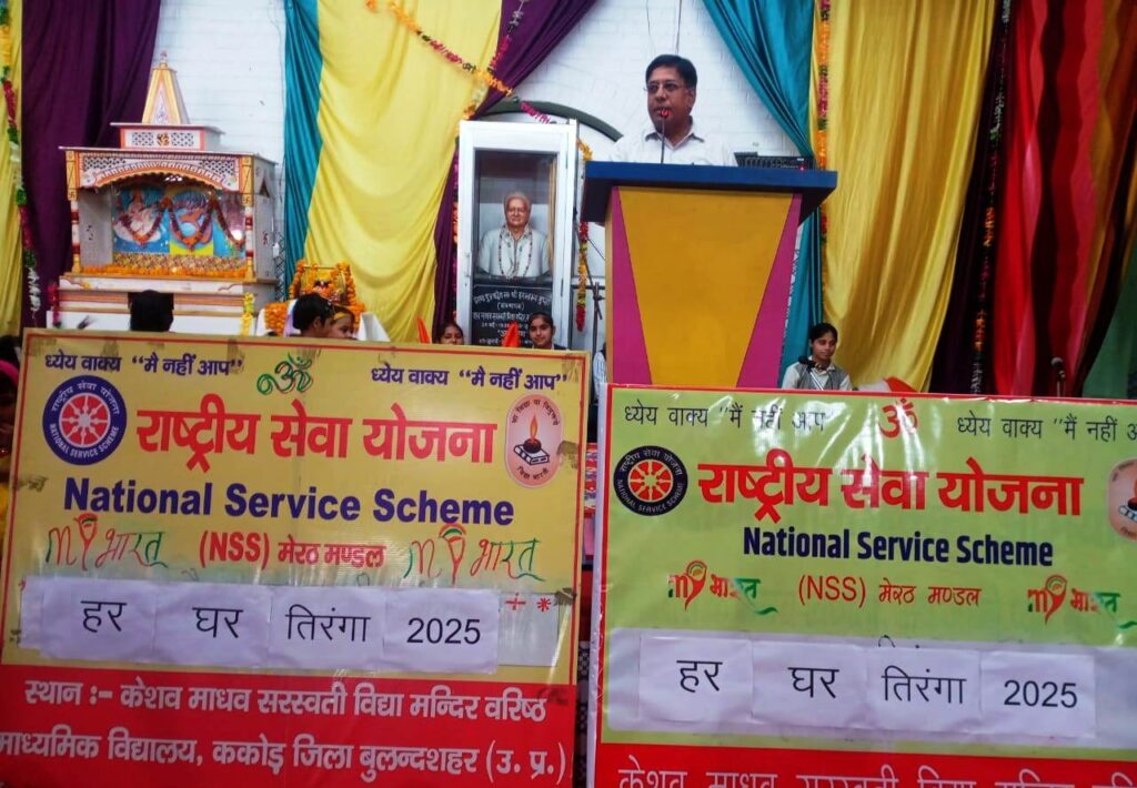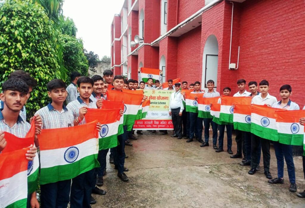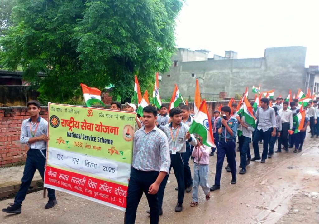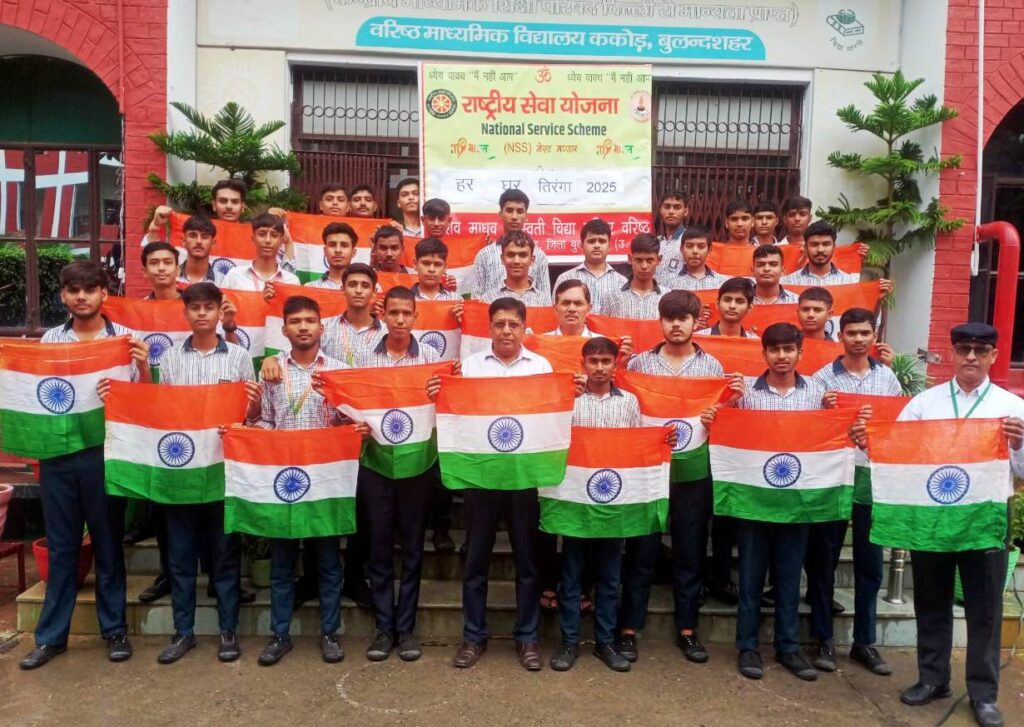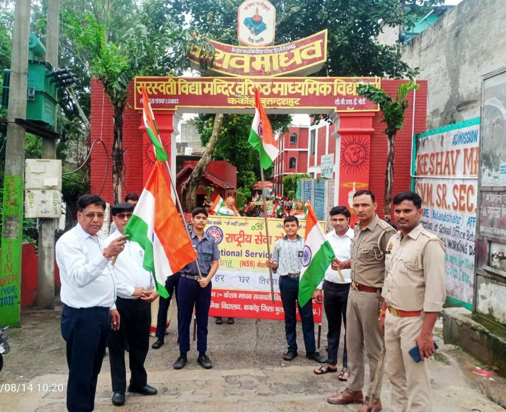 विद्यालय की राष्ट्रीय सेवा योजना के तत्वाधान में विद्यालय द्वारा तिरंगा यात्रा रैली का आयोजन किया गया। रैली का शुभारंभ थाना ककोड़ के थानाध्यक्ष श्री अनिल कुमार जी एवं विद्यालय के प्रधानाचार्य श्री मनोज कुमार मिश्र जी ने हरी झंडी दिखाकर किया। तिरंगा यात्रा की इस रैली में विद्यालय के एनसीसी, एनएसएस एवं स्काउट गाइड के भैया एवं बहनों ने भाग लिया। आज की इस तिरंगा रैली में थाना ककोड में तैनात पुलिस कर्मियों का भरपूर सहयोग रहा। रैली में विद्यालय के समस्त आचार्य बंधु एवं आचार्या बहने सम्मिलित रही। तिरंगा यात्रा की इस रैली द्वारा ककोड नगर की गलियों में देश भक्ति गीतों एवं नारों की गूंज से व्यक्तियों को देश भक्ति के प्रति जागरूक किया। विद्यालय के अध्यक्ष श्री अशोक गुप्ता जी ने तिरंगा रैली की सराहना करते हुए सभी छात्रों को देश भक्ति कार्यक्रमों में प्रतिभाग करने के लिए प्रेरणा दी।