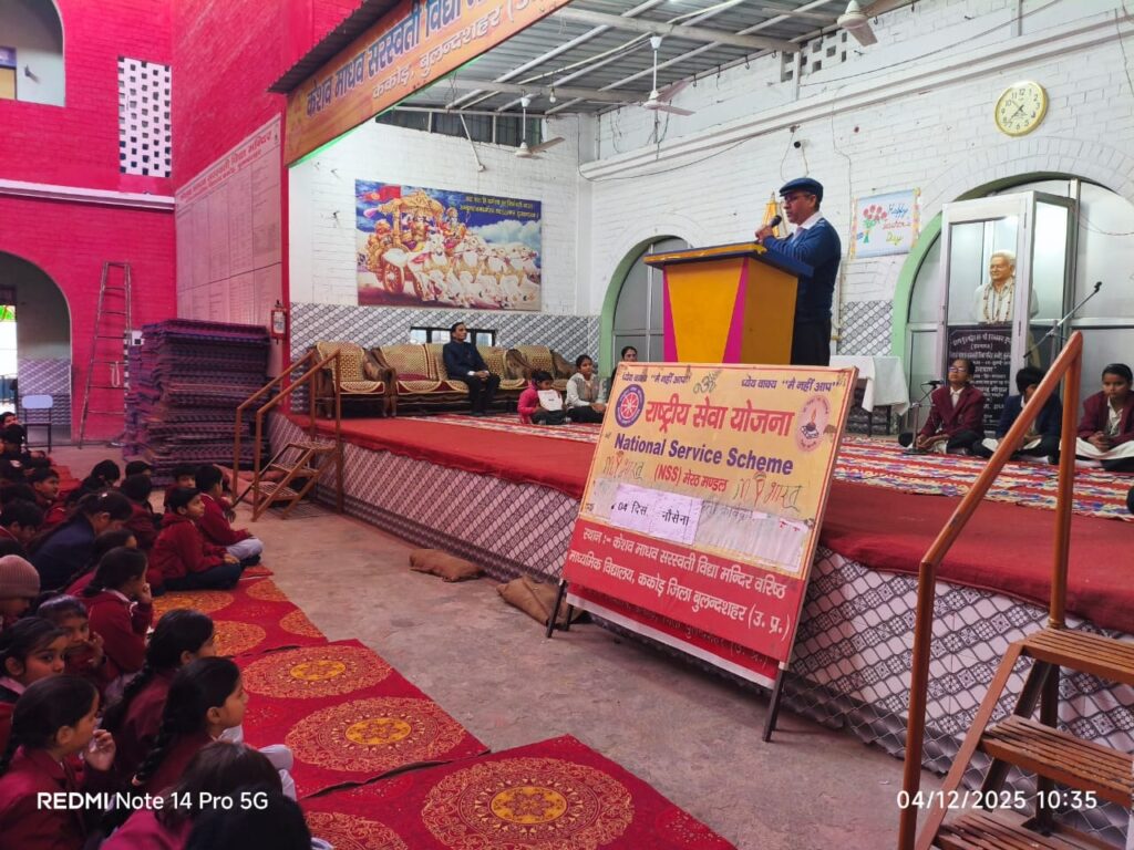 आज दिनांक 04 दिसंबर 2025 को केशव माधव सरस्वती विद्या मंदिर वरिष्ठ माध्यमिक विद्यालय ककोड में नौसेना दिवस की जयंती का कार्यक्रम बड़े ही हर्षोल्लास के साथ मनाया गया । कार्यक्रम के अध्यक्ष विद्यालय के वरिष्ठ आचार्य श्री सुरेश गुप्ता जी एवं मुख्य वक्ता आचार्य श्री कृष्ण शर्मा जी रहे । कार्यक्रम का संचालन आचार्या बहन श्रीमती सोनिया गोस्वामी जी ने किया । कार्यक्रम का शुभारंभ दीप प्रज्ज्वलन एवं पुष्पार्चन के साथ हुआ । कार्यक्रम में विद्यालय के भैया बहिनों को नौसेना के बारे में विस्तार से बताया गया I आचार्य श्री कृष्ण शर्मा जी ने के द्वारा सभी छात्र एवं छात्राओं को नौसेना दिवस कब मनाया जाता है के बारे में विस्तार से बताया । 4 दिसम्बर 1971 को भारत ने पाकिस्तान के कराची बंदरगाह पर बड़ा हमला किया था। इसे ऑपरेशन ट्राइडेंट कहा गया। हर साल 4 दिसंबर को नौसेना दिवस मनाया जाता है। 1971 के युद्ध में नौसेना की बहादुरी और रणनीतिक जीत को सम्मान देना । भारतीय नौसेना देश की समुद्री सीमाओं की रक्षा करती है। यह दिन नौसेना के वीर जवानों के साहस, समर्पण और त्याग को सम्मान देने के लिए मनाया जाता है। उन्होंने तीनों सेनाओं के बारे में विस्तार पूर्वक विद्यार्थियों को बताया ।आज के इस कार्यक्रम में समस्त आचार्य बंधु, आचार्या बहने एवं विद्यालय के समस्त भैया बहन उपस्थित रहे।