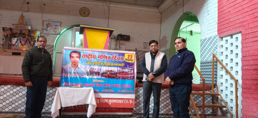 22 दिसंबर 2025 से मनाए जा रहे गणित सप्ताह में आज दिनांक 23 दिसंबर 2025 को केशव माधव सरस्वती विद्या मंदिर वरिष्ठ माध्यमिक विद्यालय ककोड में, 22 दिसंबर 1887 को जन्मे भारत के महान गणितज्ञ श्रीनिवास रामानुजन जी की जयंती के उपलक्ष में “राष्ट्रीय गणित सप्ताह” के रूप में मनाया जा रहा है । इस कार्यक्रम के अध्यक्ष विद्यालय के प्रधानाचार्य श्री मनोज कुमार मिश्र जी एवं मुख्य वक्ता गणित विभाग के प्रमुख आचार्य श्री बलवीर शर्मा जी रहे। कार्यक्रम का शुभारंभ दीप प्रज्ज्वलन एवं पुष्पार्चन के साथ हुआ। कार्यक्रम का संचालन आचार्य श्री नितिन शर्मा जी ने किया। कार्यक्रम में मुख्य वक्ता आचार्य जी ने बताया कि भारत के 14वें और तत्कालीन प्रधानमंत्री श्री मनमोहन सिंह जी ने 26 फरवरी 2012 को मद्रास विश्वविद्यालय में भारतीय गणितज्ञ श्रीनिवास रामानुजन को उनके जन्म की 125 वीं वर्षगांठ के उद्घाटन समारोह के दौरान 22 दिसंबर को “राष्ट्रीय गणित दिवस” मनाने की घोषणा की थी। मुख्य वक्ता आचार्य श्री बलवीर शर्मा जी ने श्रीनिवास रामानुजन द्वारा प्राप्त उपलब्धियों को बताते हुए उनके द्वारा गणित में योगदान को विद्यार्थियों को विस्तार पूर्वक बताया।महान गणितज्ञ श्रीनिवास रामानुजन के जीवन परिचय को बताते हुए उल्लेख किया कि इन्होंने 10 वर्ष की उम्र में त्रिकोणमिति में महारत हासिल कर ली थी। उनके द्वारा 1911 में इंडियन मैथमेटिकल सोसायटी के जनरल में उनका 17 पन्नों का एक पेपर पब्लिश हुआ था, जो बर्नौली नंबरों पर आधारित था। आचार्य जी ने भैया बहनों को विशिष्ट संख्या 1729 के संबंध में बताया।आज के इस कार्यक्रम के उपलक्ष में विद्यालय के अध्यक्ष श्री अशोक गुप्ता जी, प्रबंधक श्री जगदीश प्रसाद ढौड़ियाल जी एवं कोषाध्यक्ष श्री दिनेश सिंघल जी ने गणित विषय को सरल और रुचि पूर्ण बनाने के लिए सभी विद्यार्थियों को कम से कम दस सवाल प्रतिदिन हल करने का संकल्प दिलाया।राष्ट्रीय गणित दिवस के अवसर पर गणित से संबंधित रंगोली बनवायी गई और गणितज्ञों के चित्र बनवाये गए | कार्यक्रम में समस्त आचार्य बंधु, आचार्या बहने एवं विद्यालय के समस्त भैया बहन उपस्थित रहे।