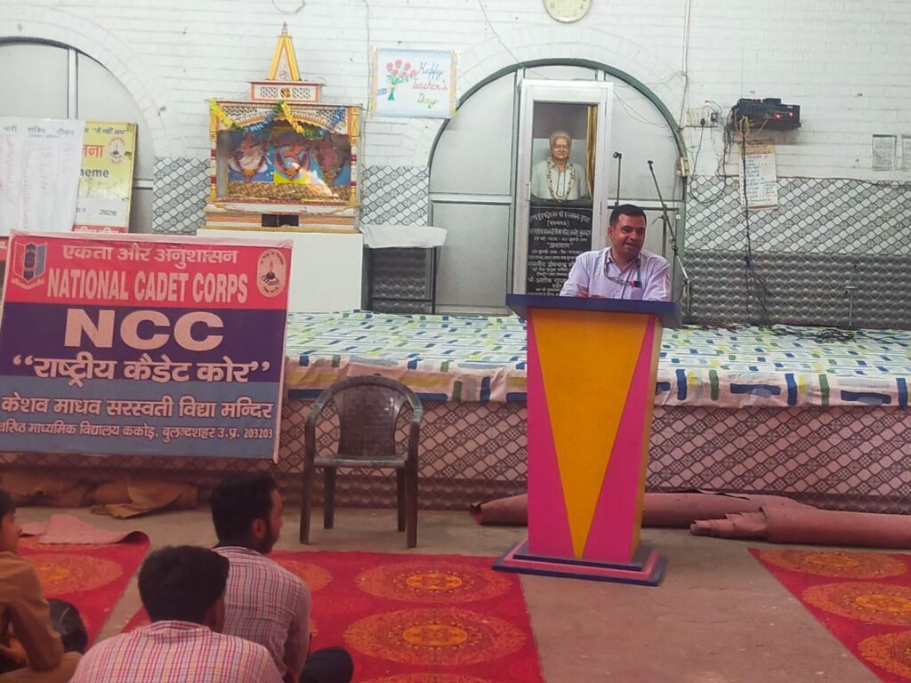 विद्यालय के अध्यक्ष श्री अशोक गुप्ता जी, प्रबंधक श्री जगदीश प्रसाद ढोंडियाल जी एवं कोषाध्यक्ष श्री दिनेश सिंघल जी के निर्देशन में वर्ल्ड क्रिएटिविटी एंड इनोवेशन डे पर 39 यूपी बटालियन एनसीसी खुर्जा ग्रुप हेडक्वार्टर अलीगढ़ के एनसीसी कैडेट ने अपने विद्यालय केशव सरस्वती विद्या मंदिर वरिष्ठ माध्यमिक विद्यालय ककोड में विभिन्न प्रकार के कार्यक्रमों का आयोजन किया गया। एनसीसी कैडेट द्वारा किए गए कार्यक्रम न्यू इन्नोवेशन केस स्टडी नेशनल इंटीग्रेशन, पोस्टर मेकिंग कंपटीशन एवं अवेयरनेस ऑफ बेसिक एआई यूजर्स फॉर एनसीसी कैडेट्स रहे।इन कार्यक्रमों का शुभारंभ अपने विद्यालय के प्रधानाचार्य श्री मनोज कुमार मिश्र जी ने किया। इस कार्यक्रम में सभी एनसीसी कैडेट ने एनसीसी के लिए ए०आई० के उपयोग को जाना तथा नए इनोवेशन जो करोना के समय किए गए थे जैसे आधुनिक औद्योगिक संयंत्र, इलेक्ट्रॉनिक मोटर व्हीकल आदि के बारे में ज्ञान प्राप्त किया । इस कार्यक्रम में जूनियर विंग तथा सीनियर विंग के सभी एनसीसी कैडेट सम्मिलित रहे एवं जे०डी० के सेकंड ऑफिसर जितेंद्र सिंह, सी०टी०ओ० श्रीमती मनीषा जी उपस्थित रही।